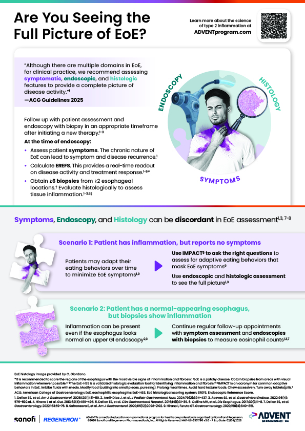 Learn about the importance of assessing key disease domains in eosinophilic esophagitis (EoE) by focusing on patients' symptoms, QoL, endoscopy, and histology.